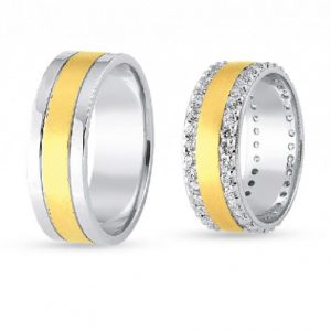 Set verighete patrate din aur alb cu galben. Verighetele Sara Jewelry se pot personaliza după preferințele clientului. Prețul afișat este calculat pentru gramajul din descriere, el poate fi influențat mai mult sau mai puțin de gramajul final al acestora.